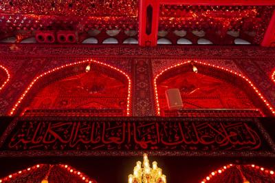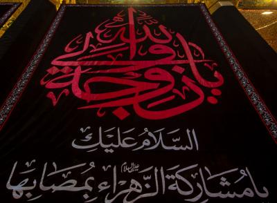 Hazırlıklar kapsamında Mukaddes Hz.Abbas (Allah’ın selâmı üzerine olsun) Türbesi ve revâkları kara kumaşlarla kaplanırken duvarlara da hatıranın sahibesinin makamını ve O’nu yitirmenin hüznünü ifade eden yazılar asıldı.