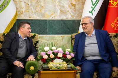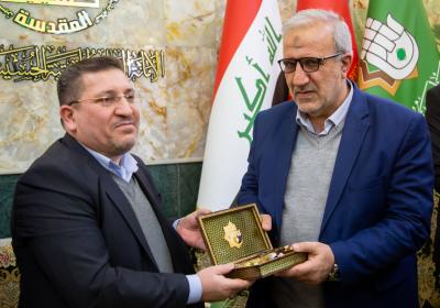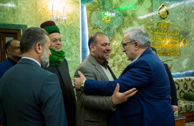Mukaddes Hz.Abbas (Allah’ın selâmı üzerine olsun) Türbesi Genel Sekreter Naibi (Vekîli) Müh. Abbas Musa Ahmed ve beraberindeki heyet; Mukaddes Hz.Huseyn (Allah’ın selâmı üzerine olsun) Türbesi’nin yeni genel sekreteri Hacı Hasan Reşîd el-Abayecî’ne tebrik ziyaretinde bulundu.