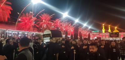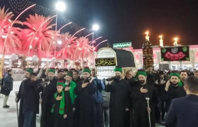 Comme il était de coutume de tenir cette marche, le départ de la cour du sanctuaire saint d'Abi Abdellah Al-Hussein (que la paix soit sur lui) vers le sanctuaire saint de son fils Aba Al Fadl Al Abbas (paix sur lui), pour présenter les condoléances, en passant par la zone entre les deux sanctuaires saints, le cortège était devancé par un cercueil symbolique à la mémoire de cette grande Dame, en plus d’un groupe d’enfants habillé en noir et portant des bougies pour exprimer leur chagrin.