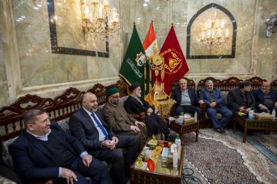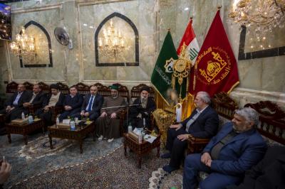Le haut fonctionnaire du sanctuaire sacré d'al-Abbas (p), Son Eminence Sayed Ahmad al-Safi a reçu le secrétaire général du sanctuaire sacré de l'imam al-Hussein (p), Haj Hassan Rashid al-'Abayji, son adjoint, et membres du nouveau conseil d'administration, leur offrant ses bénédictions et ses prières à l'occasion de leur prise de fonction dans la nouvelle administration.