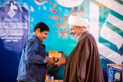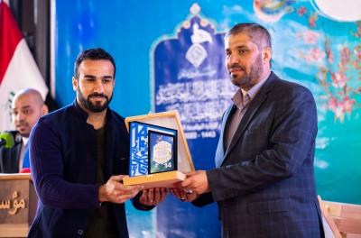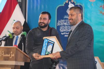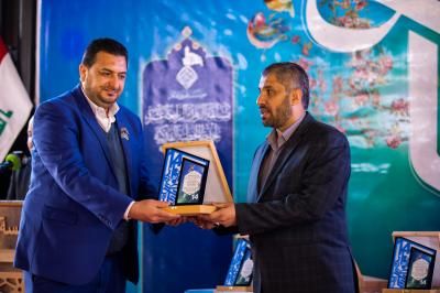 Dann folgte der berühmte Sänger von Najaf Al-Ashraf; Ahmad al-Fatlawi, und zum Abschluss überreichte das Generalsekretariat der Stiftung und der Generalinspektor der Al-Abbass -Friede mit ihm- Wehreinheit, Herr Maitham al-Zaidi, den Unterstützern dieses Werks seine Dankbarkeit. Maitham al-Zaidi. Danach wurden zehn der ersten Teilnehmer ausgelost, die als Geschenk die Kuppelfahne des Meisters Aba al-Fadl al-Abbass (Friede mit ihm) erhielten, dann überreichte das Heilige Kademitische Heiligtum zehn weiteren Teilnehmern Preise, und zum Schluss wurden Geschenke an die Gewinner der höheren Ränge verteilt.