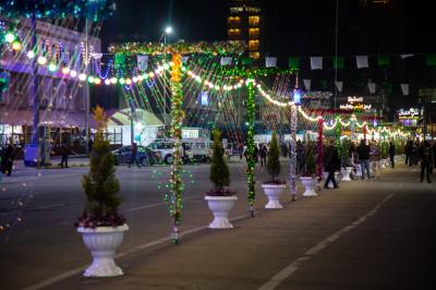 Er schloss ab: "Die Anzahl der Lampen, die für diese Dekorationen verwendet wurden, erreichte mehr als (30.000) Lampen, in verschiedenen Formen, Größen und Farben, mit dekorativer Beleuchtung, die vom Kontrollraum des Heiligen Abbassitischen Schreins gesteuert wird."