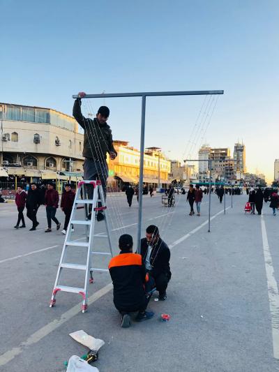 Der Verantwortliche der genannten Sektion, Ingenieur Mohammad Mostafa al-Taweel, erklärte gegenüber Al-Kafeel Netzwerk: "Gemäß den Anweisungen des Generalsekretariats des Heiligen Abbassitischen Schreins und der Abteilungsleitung haben wir damit begonnen, die Schmuckschilder zum Gedenken an diesen Jahrestag anzubringen, unsere Mitarbeiter haben vor mehr als 3 Tagen damit begonnen, an allen Straßen, die zum heiligen Heiligtum von Aba al-Fadl al-Abbass (Friede mit ihm) führen, leichte Flugblätter in verschiedenen Größen, Formen und Farben aufzuhängen, die die Atmosphäre der Freude über diesen Anlass widerspiegeln. "
