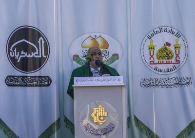 - البلدُ اليوم كما كانَ في الأمس وكما سيكونُ غداً، لا شكّ أنّه يستصرخُ هذه الطاقات الكبيرة، نحن اليوم في هذا المكان المبارك قبل ثلاث سنواتٍ لم يكنْ بهذه الحُلّة، إنّما كان أرضاً جرداء، لكن بالعزم والإرادة بُنِي هذا الصرحُ الذي أمامكم.
