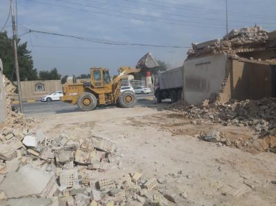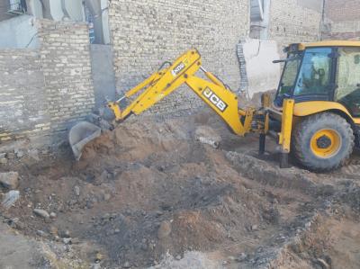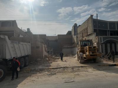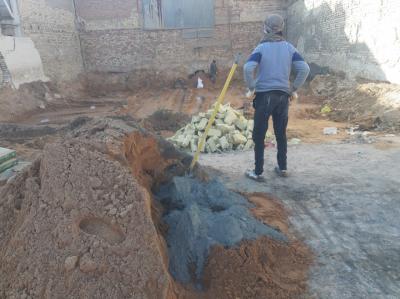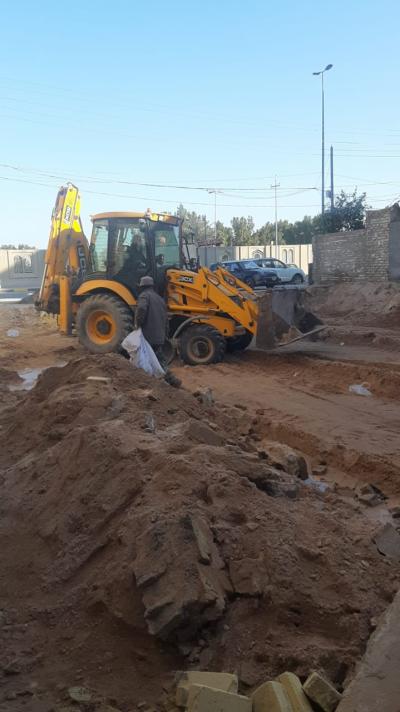 Die Mitarbeiter der Abteilung für Baumaschinen und -ausrüstungen begannen nach der Bestimmung der erforderlichen Fläche mit der Nivellierung des Geländes und der Beseitigung des Schutts, gefolgt von der Verlegung des Plans auf dem Boden und der Durchführung anderer Arbeiten, wie dem Anheben des Bodens und dem Ersetzen desselben durch einen anderen Boden unter Hinzufügung von Baumaterialien, die die Grundlage für dieses Gebäude bilden sollten.