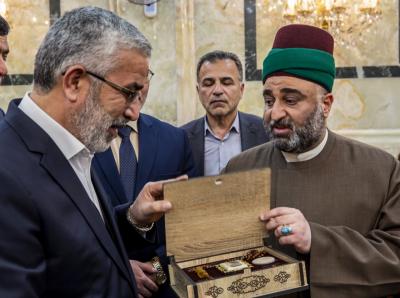 Baada ya wageni kufanya ibada ya ziara na kusoma dua mbele ya malalo ya Abulfadhil Abbasi (a.s), wakiwa na katibu mkuu wa Atabatu Abbasiyya tukufu, walikwenda kwenye ukumbi wa utawala na kumpongeza Sayyid Dhiyaau-Dini kwa kuteuliwa kuwa katibu mkuu wa Ataba takatifu, wakamuomba Mwenyezi Mungu kwa baraka za anayemtumikia amuwezeshe kutumikia malalo hiyo na mazuwaru watukufu, na wakamtakia mafanikio mema katika shughuli zake.