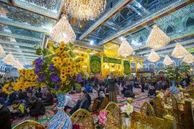 مقدس حرم کی دیواروں اور اس کے میناروں کو بھی رنگ برنگے برقی قمقوں اور تازہ گلاب کے پھولوں سے سجایا گیا ہے۔ خوشی اور مسرت کے یہ مظاہر مابین الحرمین میں بھی زائرین اور مومنین کو روحانی خوشیاں عطا کر رہے ہیں اور ماہ خدا کے اس افضل مہینے میں کربلا کے مقامات مقدسہ زمین پر بہشت کے مناظر پیش کر رہے ہیں۔