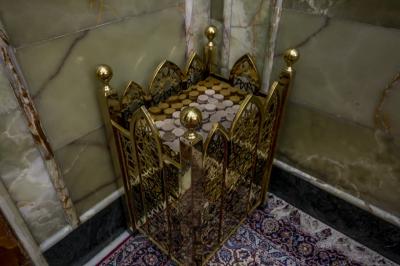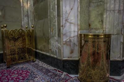 Et il précise : « Le nombre de ces cloisons est de 52, dont 29 sont réparties côté hommes et 23 côté femmes. Chacune d'elles mesure un mètre de hauteur et (2,22 m) de longueur et 10 cm d'épaisseur. Ils sont conçus avec des inscriptions et des décorations cohérentes et harmonieuses avec l'atmosphère du Saint Sanctuaire et de la cour, ainsi que l'avantage d'être de poids moyens difficiles à déplacer lors du passage des visiteurs, car ils sont fixés sur bases en métal.