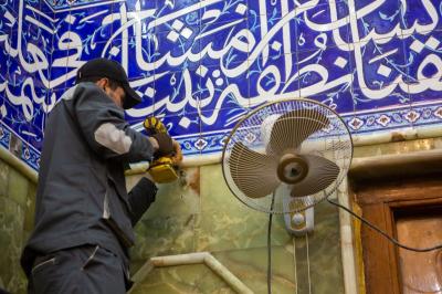 Die Mitarbeiter der Abteilung für technische Wartung und Bau haben in Zusammenarbeit mit der Abteilung für Heiligtümer des heiligen Abbassitischen Schreins mit der Installation von (50) Wanduhren begonnen, die alle im Al-Kafeel-Zentrum für Werbung und Marketing entworfen und hergestellt wurden.