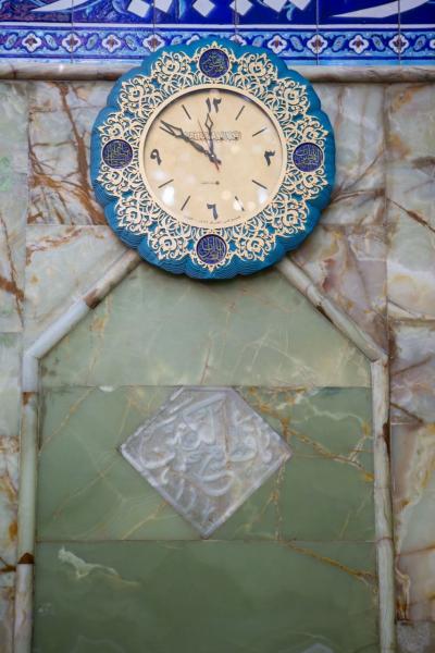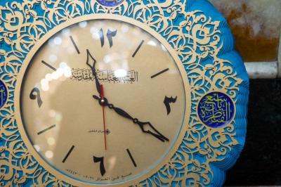 Er fügte hinzu: "Die Uhren wurden in den Korridoren des heiligen Heiligtums des Schrein von Aba al-Fadl al-Abbass (Friede mit ihm) verteilt, um die alten Uhren auf beiden Seiten von Männern und Frauen zu ersetzen, und sie wurden so angebracht, dass sie ihrem Gewicht 5,650 kg entsprechen und es für den Besucher einfacher machen, die Zeit zu erkennen."