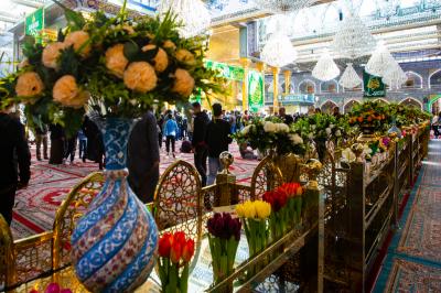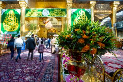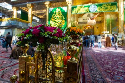 Il a ajouté : "L'un des travaux les plus importants que nous ayons fait est d'accrocher des bannières et des morceaux de joie, qui ont été conçus et brodés par les employés de la division de couture du département des cadeaux et des vœux, avec les plus belles expressions de félicitations et loyauté et une explication de certaines des vertus et qualités uniques du Commandeur des Croyants (paix soit sur lui), et ils étaient de différentes tailles et mesures qui couvraient plusieurs endroits dans le sanctuaire d'Aba al-Fadl al-Abbas (paix soit sur lui), à partir du devant de la Porte du Saint Sanctuaire et de ses couloirs et dans tout le Saint Sanctuaire."