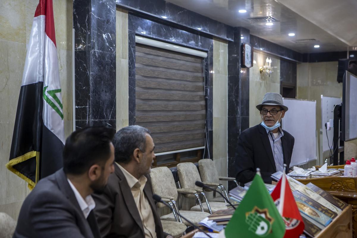 L'atelier, animé par l'investigateur Dr. Haider Al-Azzawi, a commencé par des versets clairs du sage souvenir, et comprenait deux recherches : la première intitulée : (Le poète Fuzuli Al-Baghdadi.. Caractéristiques de sa vie et de son art) par le Dr Jalil Al-Yasiri, et la seconde recherche du poète Al-Khattabi intitulée : Al-Jabbari, Abdul-Sattar La prose du Cheikh Al-Kaf'ami.. Une lecture dans son livre : « Comptabiliser l'âme blâmable et alertant l'âme endormie »).