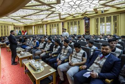The Public Relations Department at the al-Abbas's (p) Holy Shrine, represented by its University Relations Division, concluded the activities of the eighth edition of the university students' coordinating camp for the Al-Kafeel National Youth Project, this Wednesday morning in the hall of Sheikh Al-Kulayni service complex, with the participation of (75) students from (20) universities in Iraq.