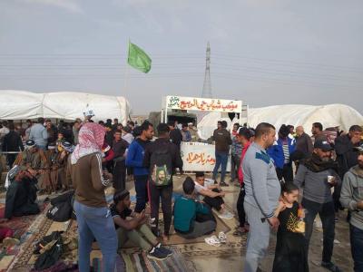 Service processions spread out along the road, to get the honor to provide the necessary services of the visitors of the martyred Imam, peace be upon him.