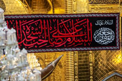So wie die Engel der Heiligtumsabteilung Beileidsbekundungen aufhängten, auf denen Ausdrücke der Trauer und des Kummers geschrieben waren, um die Korridore des edlen Heiligtums von Abu al-Fadl al-Abbass -Friede mit ihm- zu bedecken und seinem heiligen Schrein und seinem Dienst ihre Trauer und ihr Mitgefühl für den Gesandten und seine Familie (auf ihnen seien die besten Gebete und der Friede) zu diesem schmerzlichen Anlass anzukündigen. Und es tut ihnen in den Augen weh und entzündet ein Feuer in den Herzen ihrer Liebhaber und Anhänger, wie könnte er nicht der Mogul der Mühle und der Mönch der Familie Muhammads -Friede mit ihnen- und der siebte reine Imam der unfehlbaren Ahl al-Bayt sein, die der Gesandte -Friede und Segen Gottes seien auf ihm und seiner Familie- nach ihm auf ihr Kalifat festgelegt hat.