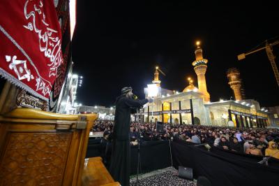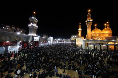 After a march in which the mourners lined up in groups, they set up a council of mourning and memorial services in the courtyard of the shrine of Imam al-Kadhem and Imam al-Jawad (peace be upon them).