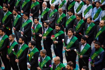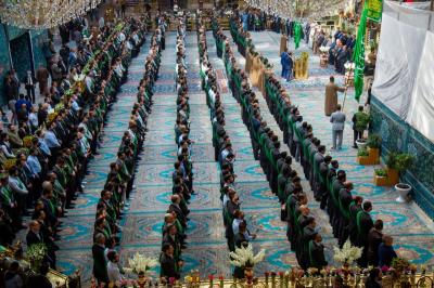 As usual in this ritual, the servants of the Holy Shrine lined up in parallel lines, facing the shrine's grid of Aba al-Fadl al-Abbas (peace be upon him), to read his special Ziyarat.