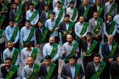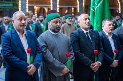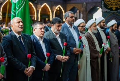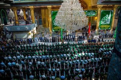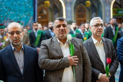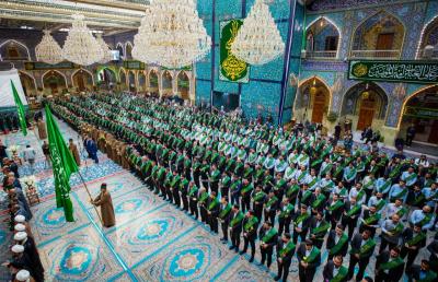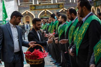 The Secretary-General of the al-Abbas's (p) Holy Shrine, Sayed Mustafa Mortadha Dea' al-Din, his deputy and a number of members of its board of directors, in addition to the local Karbala governorate and a large group of visitors.