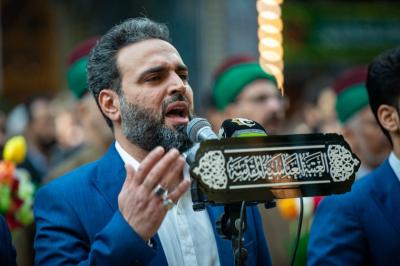 After that, the voices rose chanting "the melody of pride" (the anthem of the al-Abbas's (p) holy shrine), followed by chanting the sweetest poems and muwashahat, which verses were sung to commemorate the birth of the moon of Bani Hashem; Aba al-Fadl al-Abbas (peace be upon him).
