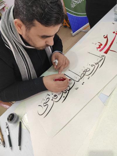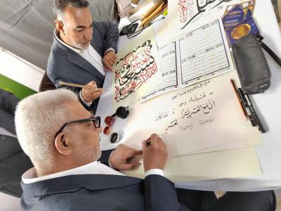 ضمّ جناحُ مركز طباعة القرآن الكريم التابع للمَجمَع العلميّ للقرآن الكريم في العتبة العبّاسية المقدّسة، المُشارِك في فعّاليات المعرض الدوليّ الأوّل للمصحف الشريف المُقام حاليّاً في ساحة ما بين الحرمَيْن الشريفَيْن، العديدَ من الأنشطة والفعّاليات، منها تقديمُ نماذج من روائع الخطّ لزائري الجناح يتمّ خطُّها بشكلٍ مباشرٍ وسريع.