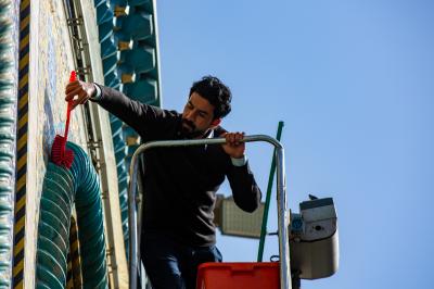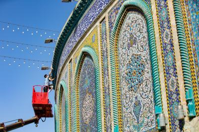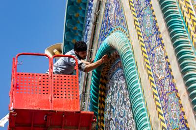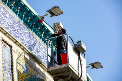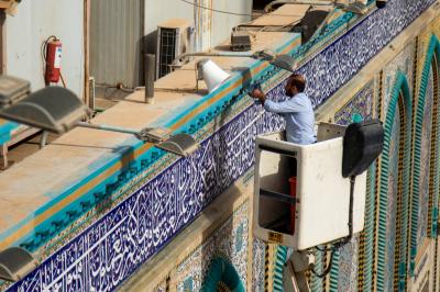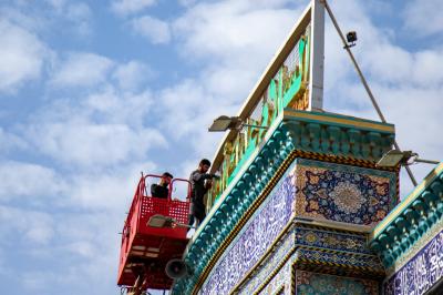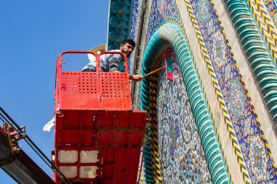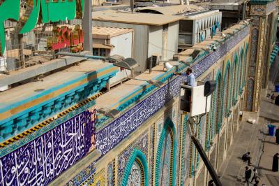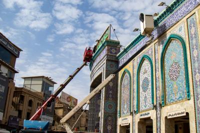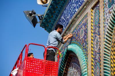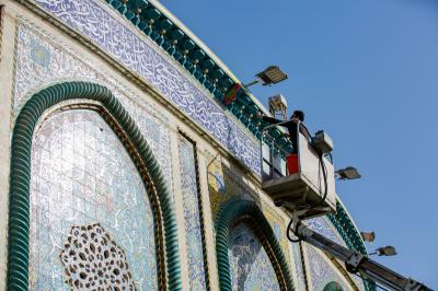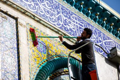 Wadumu wa kitengo cha utumishi katika Atabatu Abbasiyya tukufu, wanasafisha ukuta wa nje wa haram ya Abulfadhil Abbasi (a.s), chini ya utaratibu maalum uliowekwa.