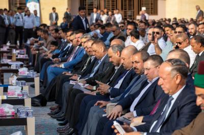 واستهل الحفل بتلاوة آيات من الذكر شنّف بها المسامع قارئ العتبتين المقدستين السيد حسنين الحلو، أعقبتها قراءة سورة الفاتحة على ارواح شهداء العراق الأبرار، ثم الاستماع للنشيدين الوطني ونشيد العتبة العباسية المقدسة الموسوم بلحن الإباء.