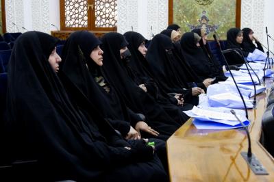 وأضافت "شهدت الندوة عقد جلسةٍ بحثيّة ترأّسها الشيخ طه حافظ خميس، واستُهِلَّت بتلاوة آياتٍ من الذكر الحكيم، أعقبها بحثٌ للشيخ د. عماد الكاظمي توسّم بعنوان: (دور فتوى الدّفاع الكفائيّ وآثارها العقائديّة والإنسانيّة)، جاء بعده بحث أ.م.د آمال آل حيدر وكان بعنوان: (دور فتوى الدفاع الكفائيّ في إعداد المرأة)، اعتلت منصّة البحث بعد ذلك م.د زينة كاظم وقد توسّم بحثها بعنوان: (المقالات المهدويّة في الصحافة النسويّة.. مجلّة زهور الجوادَيْن أنموذجاً)".