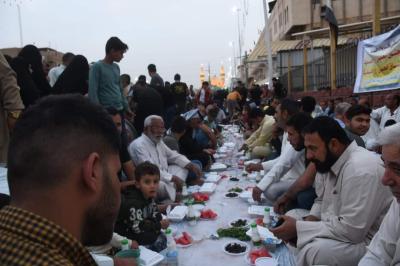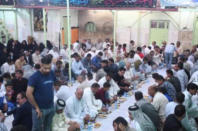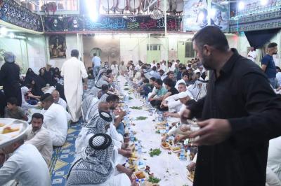 وأضاف "خلال أيّام شهر رمضان المبارك تقوم المواكبُ الخدميّة بتقديم خدماتها، من خلال إقامة موائد الإفطار وتوزيع الطعام على الزائرين، متّخذين من الطرق والمسارات التي يسلكها الزائرون منطلقاً لهذه الخدمة، فينصبون وقت الإفطار الموائد التي تحوي ما لذّ وطاب من المأكولات، ويتسابقون لخدمة الزائر الصائم كما كانوا يتسابقون لخدمة الزائرين أيّام الزيارات المليونيّة في محرّم والأربعين".