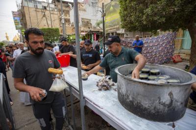 شرعت مواكبُ الخدمة الحسينيّة منذ الساعات الأولى لهذا اليوم الخميس، وهي ليلة الجمعة الثانية من شهر رمضان المبارك، بنصب موائدها والتشرّف بخدمة الزائرين الصائمين، القاصدين زيارة مرقد الإمام الحسين وأخيه أبي الفضل العبّاس(عليهما السلام)، وذلك بالتنسيق مع قسم الشعائر والمواكب الحسينيّة في العتبتَيْن المقدّستَيْن الحسينيّة والعبّاسية.