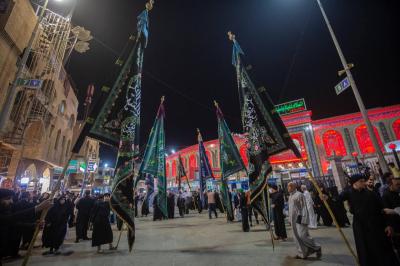 دستههای عزاداری کربلا برای دومین شب متوالی به منظور گرامیداشت سالروز شهادت مولی الموحدین حضرت امیرالمومنین علی (علیه السلام) وارد دو آستان مقدس امام حسین و حضرت ابوالفضل العباس (علیهما السلام) شدند.