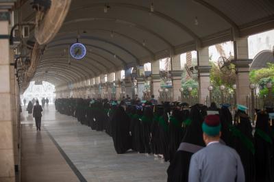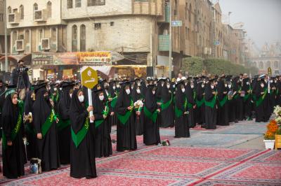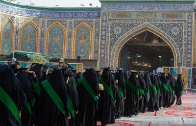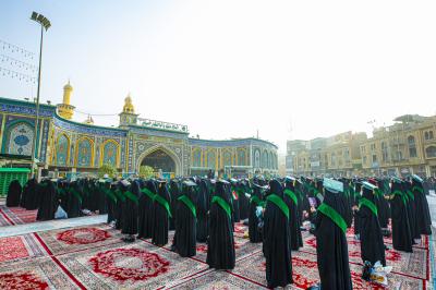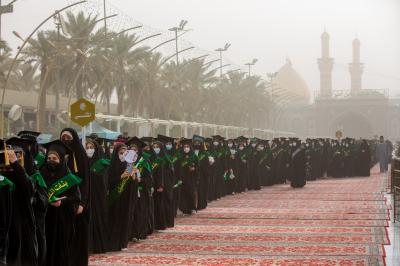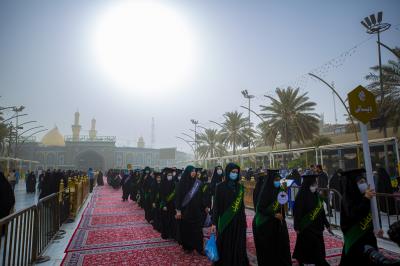 Ensuite, ils ont récité le Ziyarat d'Aba al-Fadl al-Abbas (paix soit sur lui) collectivement et dirigés par des serviteurs Sayed, puis sont entrés dans son sanctuaire sacré pour lui rendre visite, puis visiter le sanctuaire de son frère Imam al-Hussayn ( la paix soit sur lui).