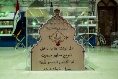 Ce paragraphe comprend la distribution de papiers consacrés à la rédaction de ce type de message, dans lesquels le visiteur écrit ses souhaits et ses supplications sur les tombes du maître des martyrs et de son frère Aba al-Fadl al-Abbas (que la paix soit sur eux) , et l'aile du sanctuaire sacré assureront leur livraison à Karbala.