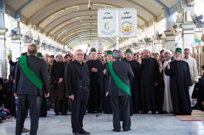 Matembezi yao yameanzia ndani ya haram tukufu ya Abulfadhil Abbasi (a.s), walianza kwa kufanya majlisi ya kuomboleza msiba huo, kisha wakaanza kutembea na kuelekea katika malalo ya bwana wa mashahidi Imamu Hussein (a.s), wakipita katika uwanja wa katikati ya haram mbili takatifu, walipo wasili kwenye haram ya bwana wa vijana wa peponi Imamu Hussein (a.s) wakapokewa na maukibu ya watumishi wa Atabatu Husseiniyya, kisha wakafanya majlisi ya pamoja ndani ya haram ya Abu Abdillahi Hussein (a.s) iliyopambwa na tenzi na mashairi kuhusu msiba huo, na athari kubwa aliyoacha katika umma wa Mtume Muhammad (s.a.w.w) na misingi ya Dini ya kiislamu.
