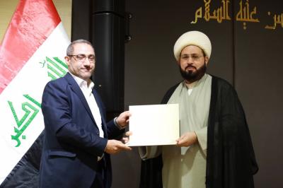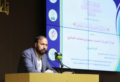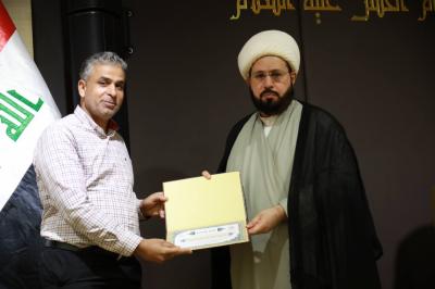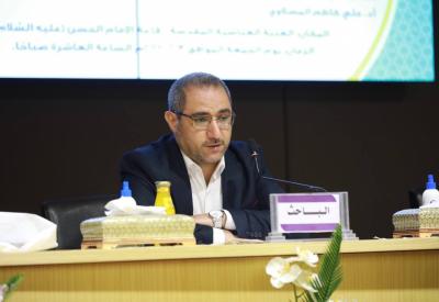 سپس پروفسور علی کاظم المصلاوی، پژوهش خود، با عنوان "قصیده رائی از ابن العرندس الحلّی -سال ۸۴۰ ه.ق- در مدح اهل بیت علیهم السلام... مطالعات تحلیلی تطبیقی در تأثیر و تأثّر) را ارائه کرد.