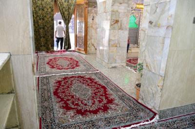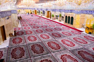 "Die Teppiche wurden entsprechend den vorher ausgemessenen Räumen verteilt. Diese Teppiche sind von luxuriöser Qualität und in Farben, die den Teppichen im Hof des Schreins von Aba al-Fadl al-Abbass (Friede mit ihm) ähneln, so dass die Türen des Schreins für die Besucher offen sind, was dazu beiträgt, dass sie ihre Arbeit und ihre Andachtsrituale in der Nähe des Maqam ihres erwarteten Imams (Friede mit ihm) verrichten können.