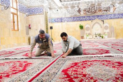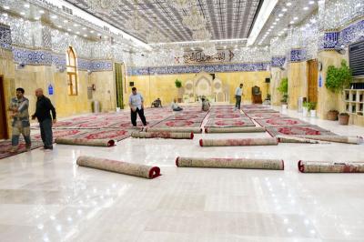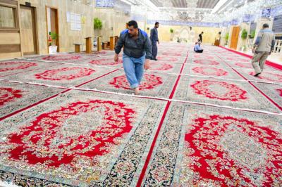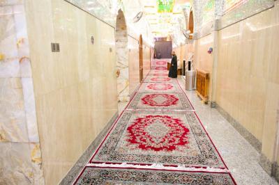 Er fügte hinzu: "Wir haben mit diesen Arbeiten begonnen, indem wir den alten Teppich entfernt, verpackt und zum Teppichwaschlabor des heiligen Schreins geschickt haben, dann die Haupthallen des Schreins und seine Korridore einschließlich des Bodens und der Wände gereinigt haben, nachdem wir die Türen des Heiligtums geschlossen hatten. Nach Abschluss dieser Arbeiten begannen wir mit einer neuen Reihe von Teppichen, mit Ausnahme des Frauensaals, der zu einem späteren Zeitpunkt eingerichtet wird, und dies in Verbindung mit der Einrichtung des Schreins von Aba al-Fadl al-Abbass (Friede mit ihm)".