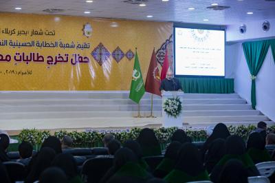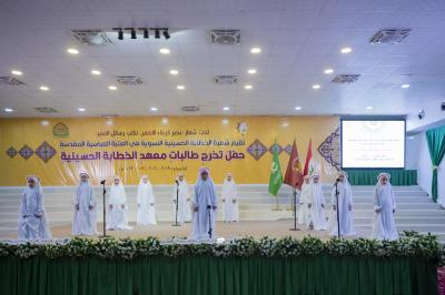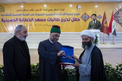 احتفت العتبةُ العبّاسية المقدّسة بخرّيجات الدفعة السابعة من طالبات معهد الخطابة الحسينيّة التابع لها، بحضور أمينها العامّ السيّد مصطفى مرتضى ضياء الدين وعددٍ من أعضاء مجلس إدارتها ورؤساء أقسامها، وشخصيّاتٍ ووفودٍ مثّلت عدّة جهات فضلاً عن المُحتفى بهنّ وجمعٍ من ذويهنّ.