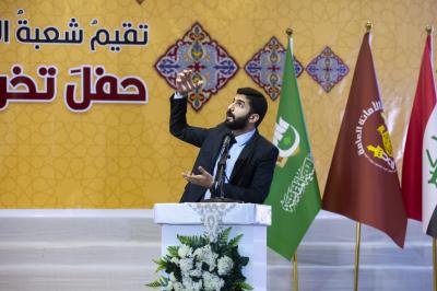 الاحتفاليّةُ التي أُقِيمت صباحَ هذا اليوم الاثنين تحت شعار (بحبر كربلاء الأحمر نكتب رسائل المنبر)، احتضنتها القاعةُ المركزيّة لمجمّع الشيخ الكليني(رضوان الله عليه) التابع للعتبة العبّاسية المقدّسة، واستُهِلَّت بتلاوة آياتٍ من الذكر الحكيم تلاها القارئُ السيّد حسنين الحلو، ثمّ الاستماع للنشيد الوطنيّ وأنشودة العتبة المقدّسة وقراءة سورة الفاتحة ترحّماً على أرواح شهداء العراق.