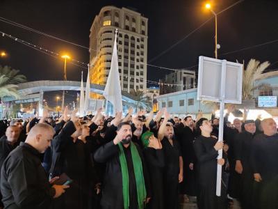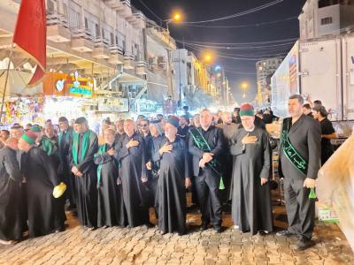 روضہ مبارک امام حسین(ع) اور روضہ مبارک حضرت عباس(ع) کے شعائر و حسینی مواکب کے سیکشن کے تعاون سے کاظمیہ میں برپا کردہ اس کربلائی عزاء میں کربلا کی ماتمی و حسینی انجمنوں اور مذکورہ سیکشن کے اہلکاروں نے شرکت کی کہ جن کی سربراہی مذکورہ بالا سیکشن کے سربراہ سید عقیل یاسری نے کی۔