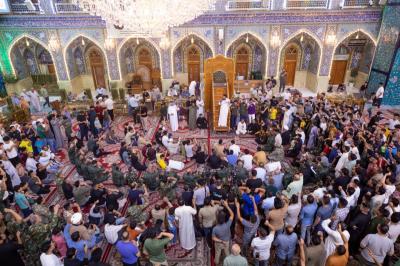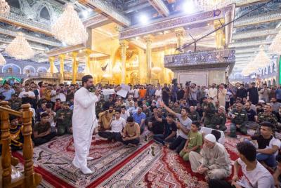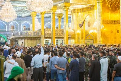 جمعی از زائران و خادمان حرم مطهر و مبارزان تیپ در این مراسم شرکت داشتند که با تلاوت آیاتی از قرآن کریم آغاز شد و در ادامه سخنرانی توسط زمان الحسناوی ایراد شد.