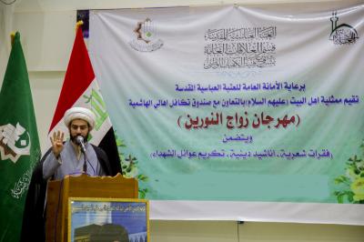 Der Haschemitische Bezirk in der Provinz Babylon veranstaltete unter der Schirmherrschaft des Heiligen Abbassitischen Schreins das Al-Nourayn-Hochzeitsfest, das von der Sektion für Hochschul- und Schulbeziehungen der Abteilung für Öffentlichkeitsarbeit in Zusammenarbeit mit dem Vertreter der Ahl al-Bayt (Friede mit ihnen) in der Justiz und ihrem Solidaritätsfonds organisiert wurde.