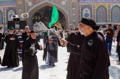 Since the early hours of the morning and as usual in such sad days of the martyrdom anniversary of the grandson of the Messenger of Allah and an important member of Ahl al-Bayt (peace be upon them all), the martyrdom anniversary of Imam al-Baqer (peace be upon him), The Karbala condolences' procession started flocking the shrines of Imam al-Hussayn and his brother Aba al-Fadl al-Abbas (peace be upon them) to extend their condolences and to participate in the commemoration of this sad occasion, inspired by the words of Imam as-Sadeq (peace be upon him): "Revive our matter, may Allah has mercy on he who revives our matter".