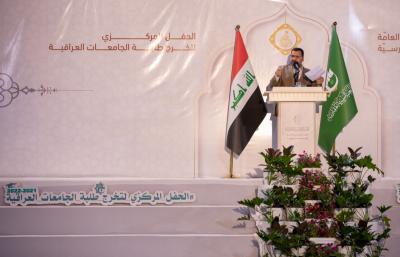 أعقبت ذلك كلمةُ وزارة التعليم العالي ألقاها ممثّلُها في الحفل الأستاذ الدكتور حميد التميمي، وهنّأ من خلالها الطلبة الخرّيجين داعياً لهم بالتوفيق والسداد لخدمة البلاد، كما شكر العتبة العبّاسية المقدّسة على إقامتها هذا الحفل الذي يعكس الصورة الناصعة لطالب العلم العراقيّ، بعيداً عن الصورة المسيئة التي صُدِّرت في مواقع التواصل الاجتماعيّ.