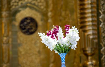 Die Blumen und Setzlinge sind eine der feinsten und wertvollsten Blumenarten, die in einer schönen Kunstform verwendet wurden, um das heilige Gitter in Form von Girlanden zu schmücken, die jeweils schöne und bunte Blumen enthielten, während andere Girlanden am Eingang des heiligen Schreins aufgehängt wurden.
