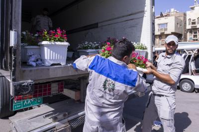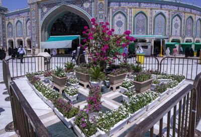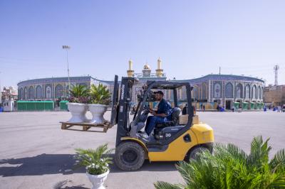 D'autres arbres verts ornementaux ont également été placés dans la rue Qibla du saint sanctuaire, pour envoyer de la joie et du bonheur aux visiteurs et indiquer l'importance de cette occasion, et ont fait fleurir cette place avec des fleurs colorées.