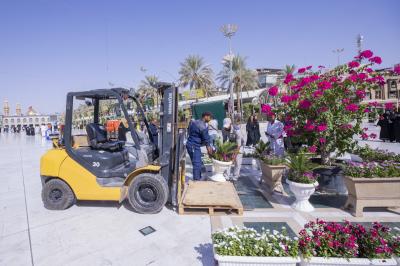 Le personnel des Pépinières Al-Kafeel, affilié au département des affaires de service au saint sanctuaire d'Al-Abbas (p), a décoré le saint sanctuaire d'Aba al-Fadl al-Abbas (la paix soit avec lui), ses environs et la place entre les deux saints sanctuaires avec des collections d'arbres ornementaux et de roses naturelles, en célébration du plus grand Aïd d'Allah ; Aïd al-Ghadeer.