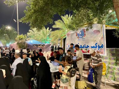 الموكبُ منذ يومَيْن متواصلٌ بتقديم الخدمات، حيث عمل على توفير كمّياتٍ كبيرة من مياه الشرب المبرَّدة والمعبّأة بكاساتٍ، إضافةً إلى العصائر وموادّ خدميّة أُخَر، وهذا ما يحتاجه الزائر نتيجةً لارتفاع درجات الحرارة وزيادة الطلب على هذه المواد، وتستمرّ هذه الخدمات حتّى انتهاء مراسيم الزيارة.