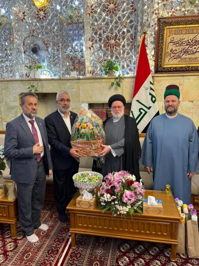 Die Delegation wurde vom stellvertretenden Leiter der Abteilung für Öffentlichkeitsarbeit des Heiligen Abbassitischen Schreins, Sayed Mohammed Gelokhan al-Musawi, geleitet. Während des Treffens tauschten sie freundliche und einladende Worte aus und übermittelten Glückwünsche und Segenswünsche zu diesem Anlass.