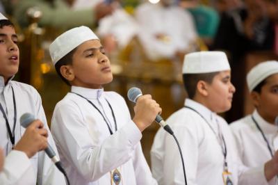شارك متعلِّمو مشروع أمير القرّاء الوطنيّ، الذي ينظّمه مركزُ المشاريع القرآنيّة التابع للمَجمَع العلميّ للقرآن الكريم في العتبة العبّاسية المقدّسة، بتلاواتٍ جماعيّة على الطريقتَيْن العراقيّة والمصريّة في محافلَ عديدة داخل العتبة المقدّسة وخارجها.