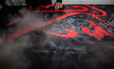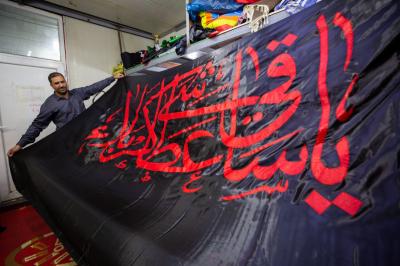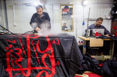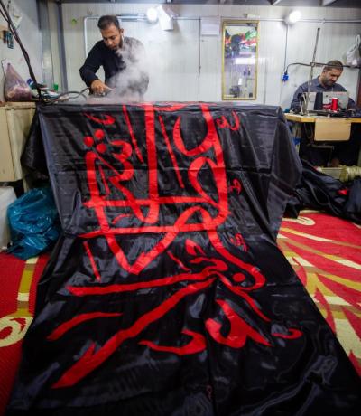 Le chef de la division de couture du département des cadeaux et des vœux, M. Abdul-Zahra Daoud Salman, a déclaré : « Notre personnel a l'honneur de coudre la bannière pour les mois de Muharram et de Safar, et elle est de couleur noire et de haute qualité, et avec des tissus de qualité, et présente plusieurs avantages en termes de tissu et de lignes."